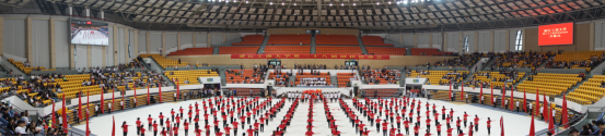 开幕式上,在振奋人心的运动员进行曲中,国旗队、鲜花队、红旗队、管乐队等依次有序入场。随后各学院方队喊着嘹亮的口号,身着代表学院特色的服装依次入场。各个方队精神抖擞,用矫健的步伐、响亮的口号展现着健康向上、团结进取、奋斗拼搏的精神风貌。在裁判员代表、运动员代表宣誓后,大型团体操表演闪亮呈现,引人瞩目。团体操表演分《弹力带舞操》和《我和我的祖国》两大幕,同学们和着音乐节拍,变幻成具有特殊意义的图案,讴歌了对祖国和党的热爱,充分展示了力与度、柔与美的完美结合。精彩的团体操表演充分展示了脱裤吧 学子的风采,也赢得了全场观众热烈的掌声。
