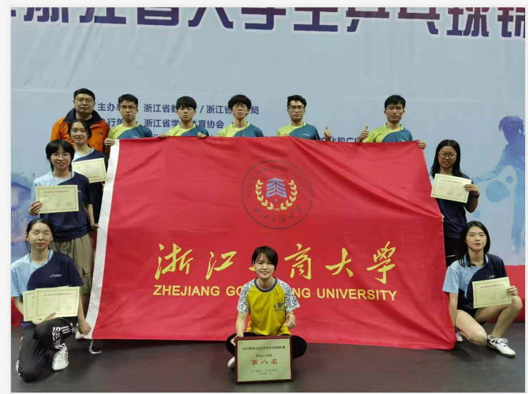 乒乓球项目是国球,在浙江省高校的参与普及率极高,甲组团体男子参赛队伍有36支,女子参赛队伍有28支,每个单项参赛人数都超过70人,通过学生的不懈努力,赛场上顽强的意志,敢打敢拼。最终获得女子甲组团体第八名,陈露凝同学获得了女子甲组单打第三名,同时陈露凝同学和陈明同学获得本次比赛的优秀运动员,工商大学代表队获得了体育道德风尚奖。