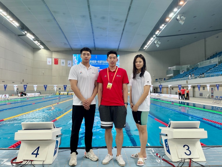 7月12日至17日,由教育部、国家体育总局和共青团中央主办,山东省教育厅、青岛市人民政府联合承办的中华人民共和国第十四届学生运动会在青岛举行。脱裤吧 游泳队两名学生运动员(商科元、施奇雯)代表浙江省大学生游泳队参赛,在教练员张朕的带领下取得了好成绩。其中商科元(工商1401)获得男子乙组200米自由泳第四名、男子乙组4*100米自由泳接力第四名、男子乙组4*100米混合泳接力第四名、男女乙组4*100米自由泳接力第五名以及男子乙组4*200米自由泳接力第五名,施奇雯(会计1701)获得男女甲组4*100米自由泳接力第五名、女子甲组400米自由泳第六名、女子甲组4*100米自由泳接力第六名、女子甲组4*200米自由泳接力第七名以及女子甲组800米自由泳第八名。