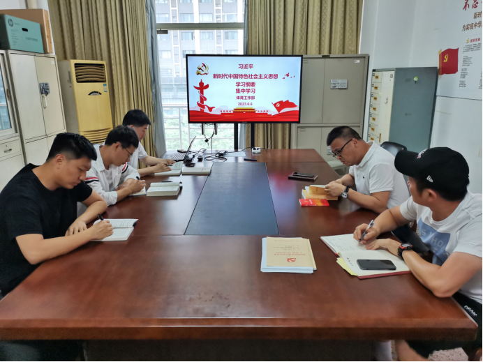6月6日中午,体育工作部党直支在体育中心四楼会议室召开《习近平新时代中国特色社会主义思想学习纲要》学习会,会议由党直支书记徐峰主持,党直支班子成员参加。