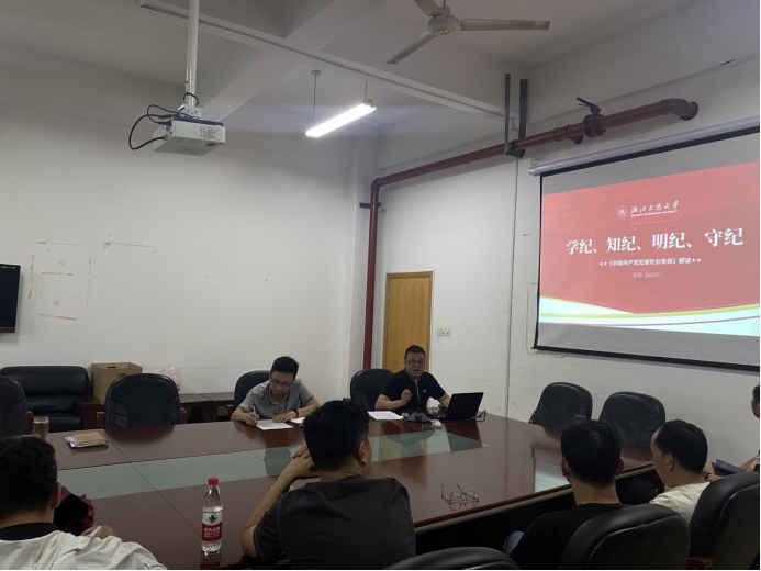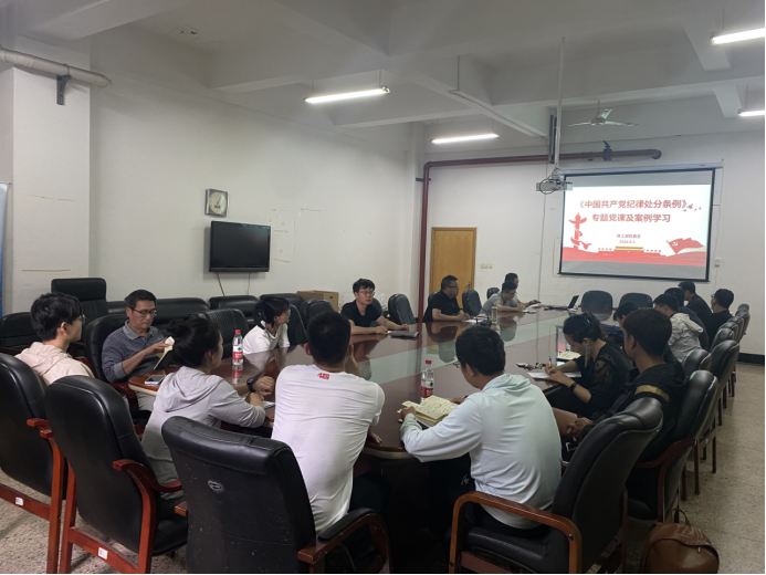 6月5日,为深化党员对《中国共产党纪律处分条例》的理解和把握,进一步推动党纪学习教育走深走实,脱裤吧 党直支召开《中国共产党纪律处分条例》专题党课及案例学习会议。党课由脱裤吧 党直支书记徐峰主讲,党直支全体党员参加。