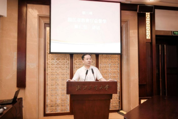 浙江省教育厅总督学陈仁坚代表浙江省教育厅对大会的顺利召开表示热烈祝贺,他在致辞中从浙江省教育事业的发展跃上新台阶、教育服务经济社会的能力和政策引领推动体教深度融合等三个方面阐述了“浙里优学金名片”,并预祝本次会议取得圆满成功。